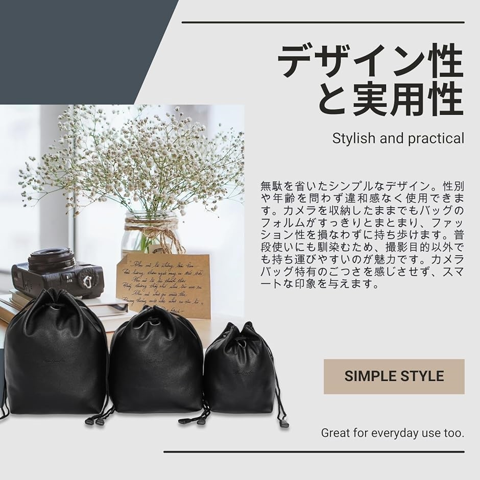 - バリエーションコード : 2bukg0fisv商品コード2bukg9nntd商品名カメラバッグ 巾着バッグ カメラ バッグ 一眼レフ ケース 巾着 小型 おしゃれ 軽量ブランドNeutral Zenithカラーブラックサイズ等M「カメラを守る巾着型」 巾着タイプのカメラバッグは、開閉が簡単で出し入れがスムーズに行えます。撮影中の取り回しやすさを重視した設計で、一眼レフやミラーレス機の収納に便利です。荷物の多い撮影現場でも、必要なカメラ機材を素早く取り出せます。「おしゃれで実用的」 シンプルながらもおしゃれなブラックのカラーで、性別を問わず使いやすいデザインです。小型ながらも機能性を備えており、日常の持ち歩きにも違和感なく溶け込みます。カメラを入れたままでもバッグの外観がスマートにまとまります。「フリース裏地で保護」 内部は柔らかなフリース素材で、一眼レフやレンズなどをキズから守ります。衝撃吸収性に優れたケース構造で、日常の衝撃や擦れによるダメージを軽減します。精密機器であるカメラを収納するケースとして、細部まで丁寧に作られています。「サイズ展開」 選べるS・M・Lサイズで、カメラの大きさやアクセサリーに合わせた収納が可能です。ブラック、ブラウンのシンプルなデザインで、どんなスタイルにも自然に溶け込みます。一眼レフや小物もまとめて入れられる巾着バッグで、持ち歩きが一層便利になります。「商品詳細」 タイプ:巾着型カメラバッグ 素材:PUレザー/裏地 フリース カラー:ブラック / ブラウン サイズ展開:Sサイズ、Mサイズ、Lサイズ 用途:一眼レフ・ミラーレス・レンズの収納や保管、外出・旅行・日常用カメラケース※ 他ネットショップでも併売しているため、ご注文後に在庫切れとなる場合があります。予めご了承ください。※ 品薄または希少等の理由により、参考価格よりも高い価格で販売されている場合があります。ご注文の際には必ず販売価格をご確認ください。※ 沖縄県、離島または一部地域の場合、別途送料の負担をお願いする場合があります。予めご了承ください。※ お使いのモニタにより写真の色が実際の商品の色と異なる場合や、イメージに差異が生じることがあります。予めご了承ください。※ 商品の詳細(カラー・数量・サイズ 等)については、ページ内の商品説明をご確認のうえ、ご注文ください。※ モバイル版・スマホ版ページでは、お使いの端末によっては一部の情報が表示されないことがあります。すべての記載情報をご確認するには、PC版ページをご覧ください。