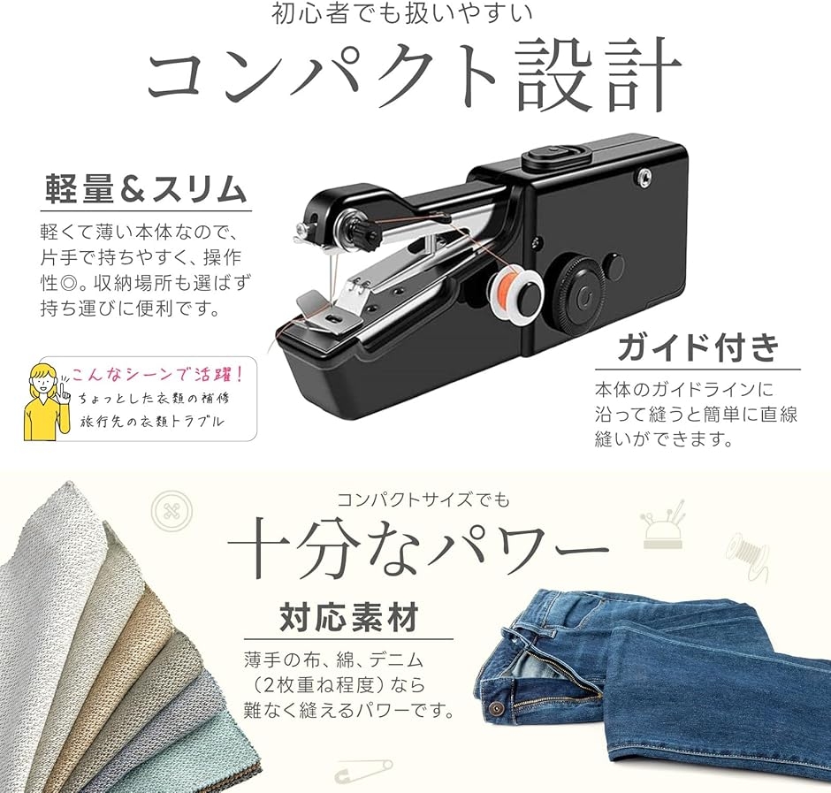 初心者でも扱いやすく、日常のちょっとした裁縫や補修作業にぴったり。