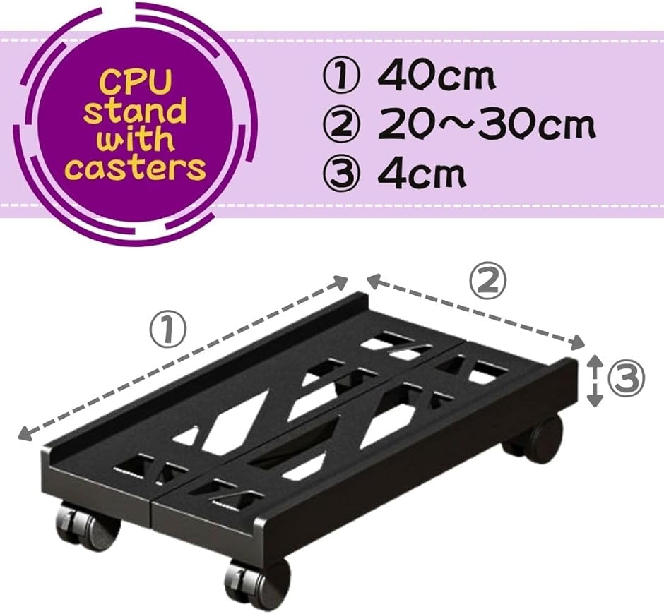 CPUスタンド キャスター付き台車 サイズ調整可能 デスク下収納 落下防止 PCカート (黒, 幅20〜30x奥行40cm)