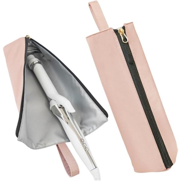ヘアアイロンケース カールアイロン 収納ポーチ ヘアブラシ 耐熱 防水 持ち運び おしゃれ(ピンク)