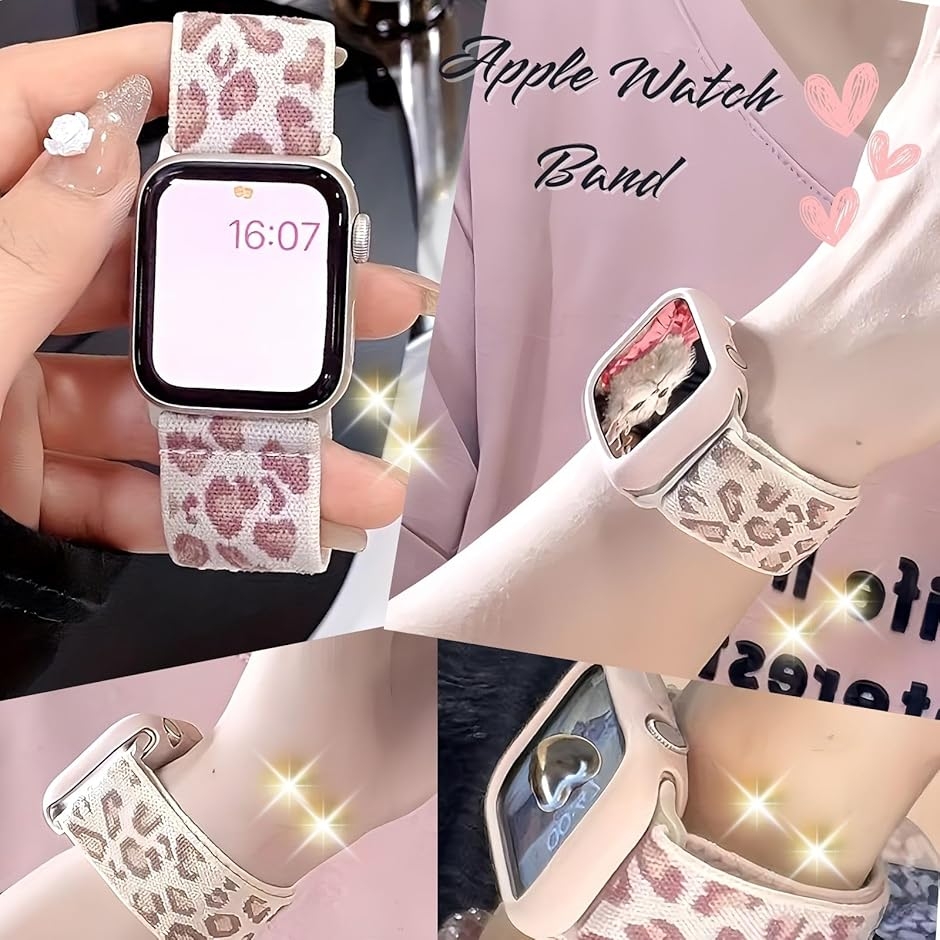 【互換品】 互換 アップルウォッチ バンド かわいい ベルト カバー (レオパードピンク, 小 38mm / 40mm / 41mm)