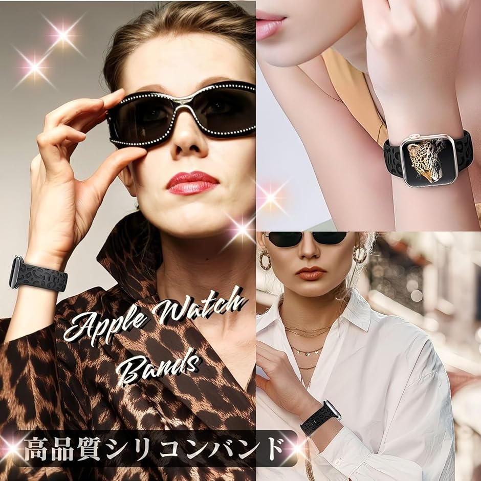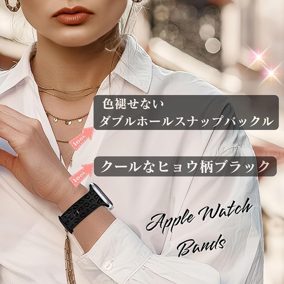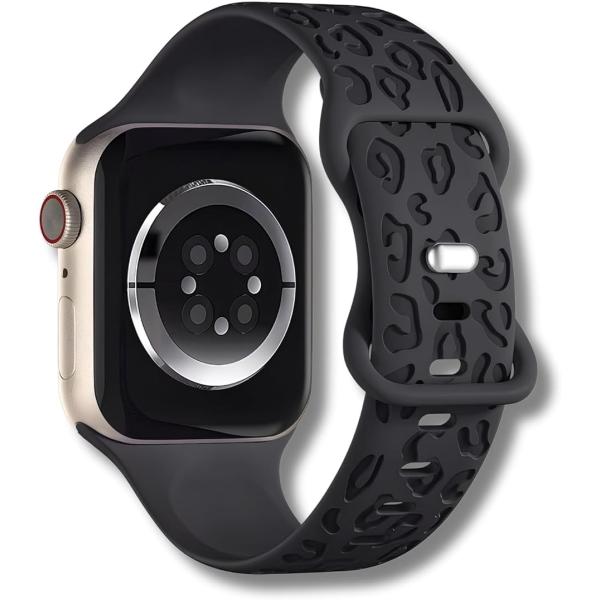 【互換品】 互換 アップルウォッチ バンド かわいい ベルト (レオパードブラックシリコン, 小 38mm / 40mm / 41mm)