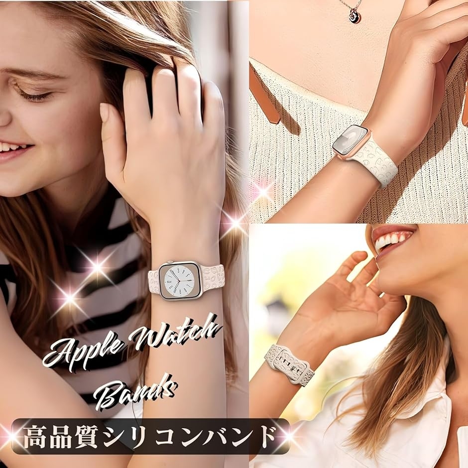 【互換品】 互換 アップルウォッチ バンド かわいい (レオパードホワイトベージュシリコン, 小 38mm / 40mm / 41mm)