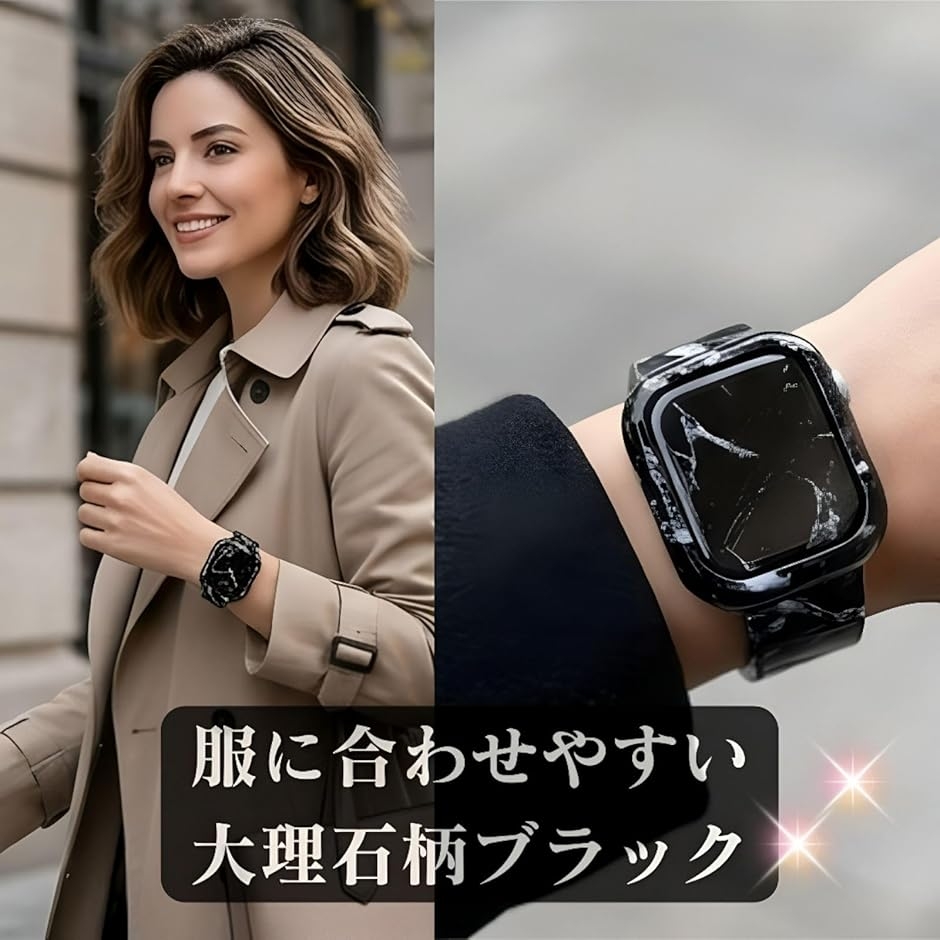 互換 アップルウォッチ 保護 カバー ケース 大理石柄 (大理石柄ブラック, 40mm)