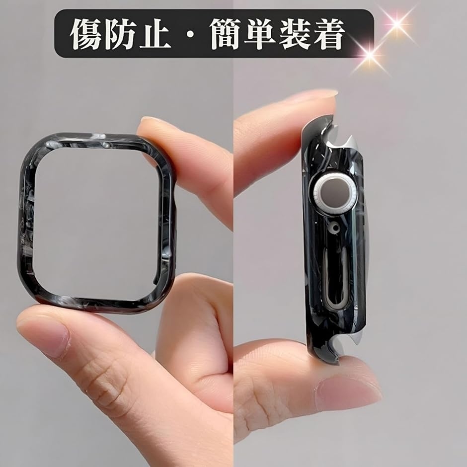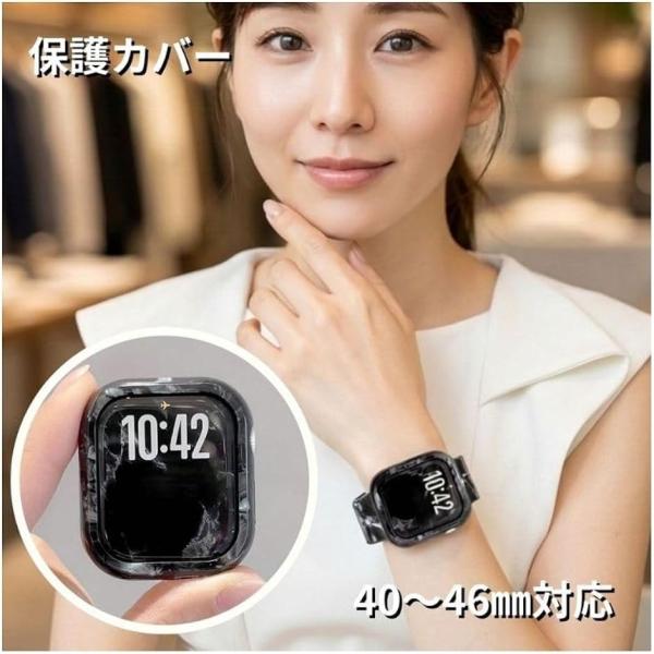 互換 アップルウォッチ 保護 カバー ケース 大理石柄 (大理石柄ブラック, 45mm)