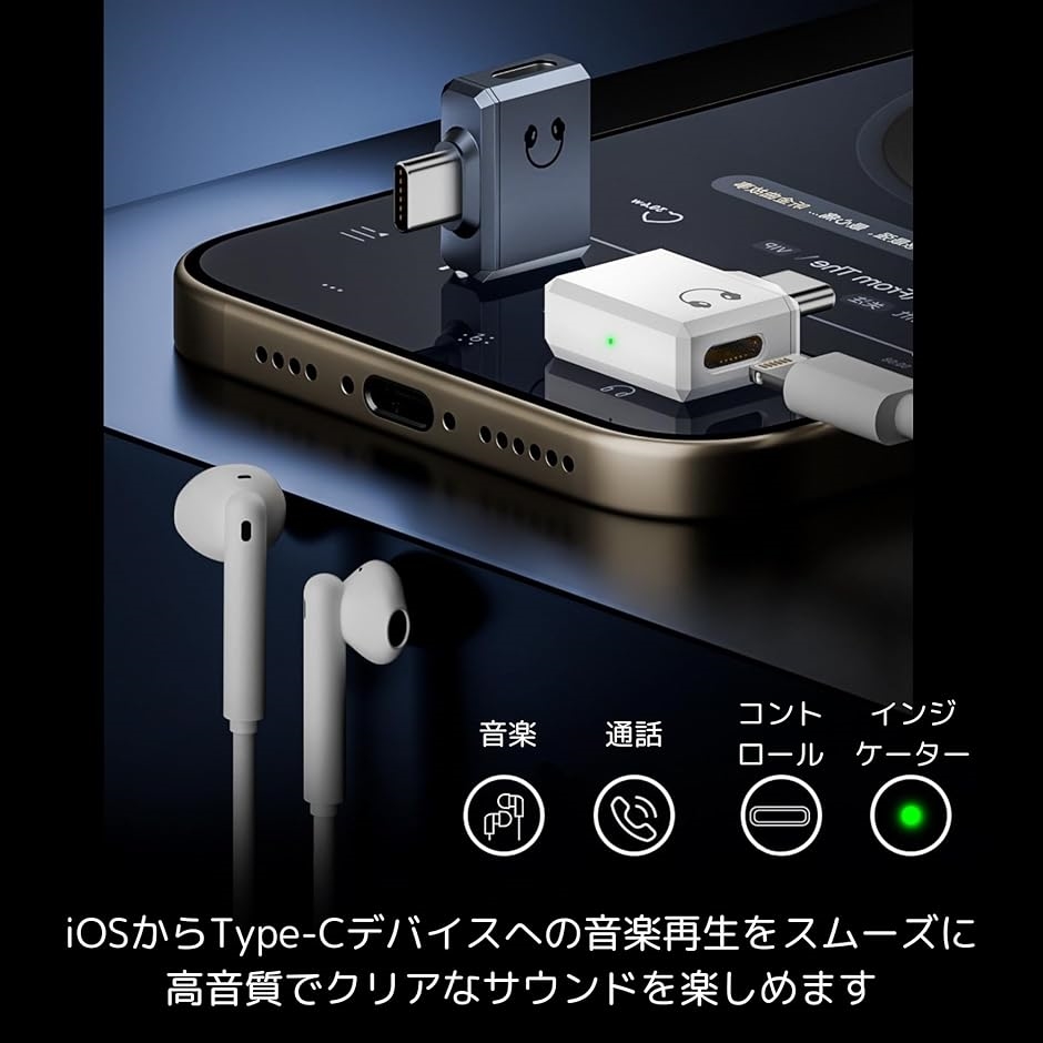 「シームレスな音楽体験」このイヤホンアダプターを使用することで、iOSデバイスからType-Cデバイスへの音楽再生がスムーズに行えます。