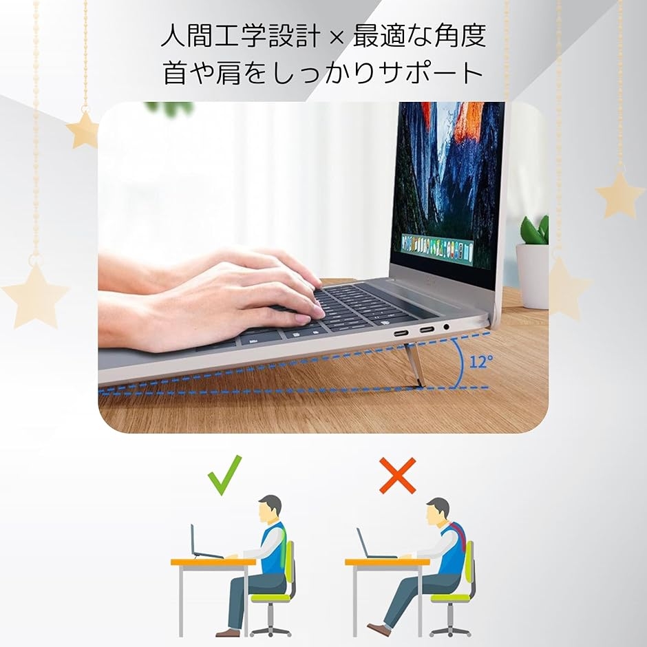 「滑り止め機能」スタンドには滑り止め機能が備わっており、使用中にノートパソコンがずれる心配がありません。