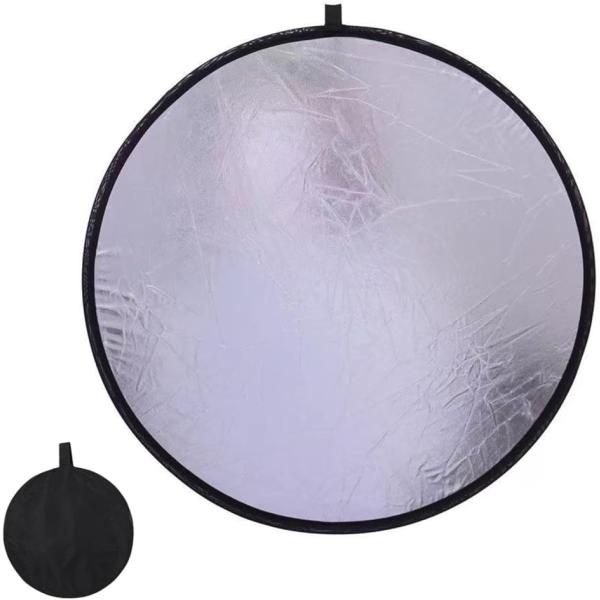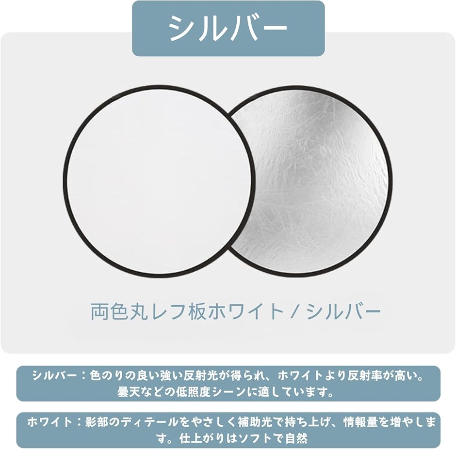 撮影用 レフ板 丸型 折りたたみ 収納バック (シルバー, 80cm)