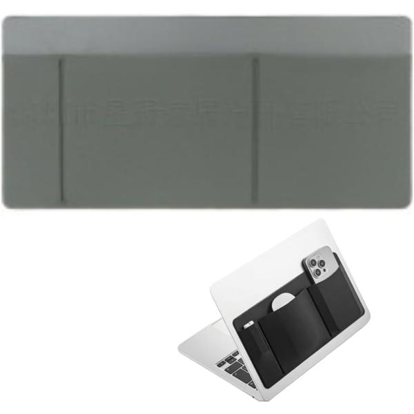 ノートパソコン用 貼り付け収納ポーチ 3ポケット 粘着式 小物整理 PCデスク周り便利グッズ (グレー)