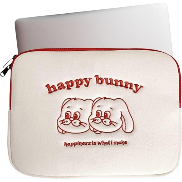パソコンケース 可愛い おしゃれ タブレット ノートパソコン ポーチ pcケース もこもこ (happy bunny, 13.3インチ)