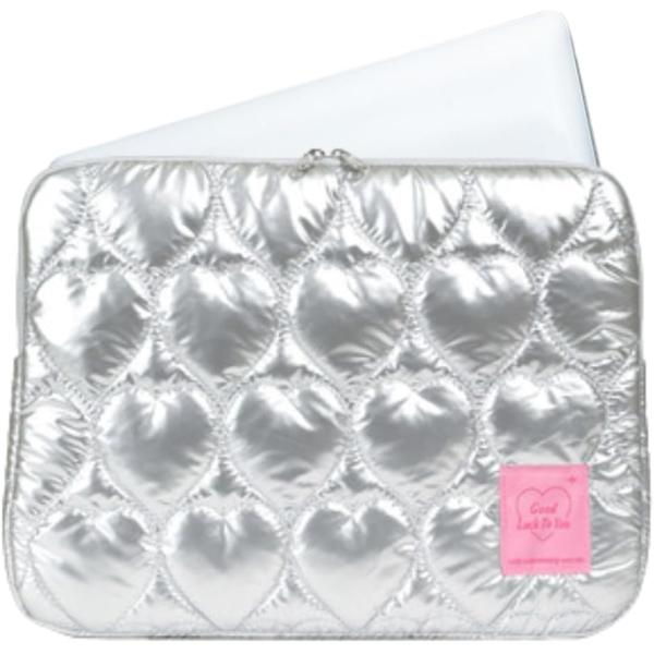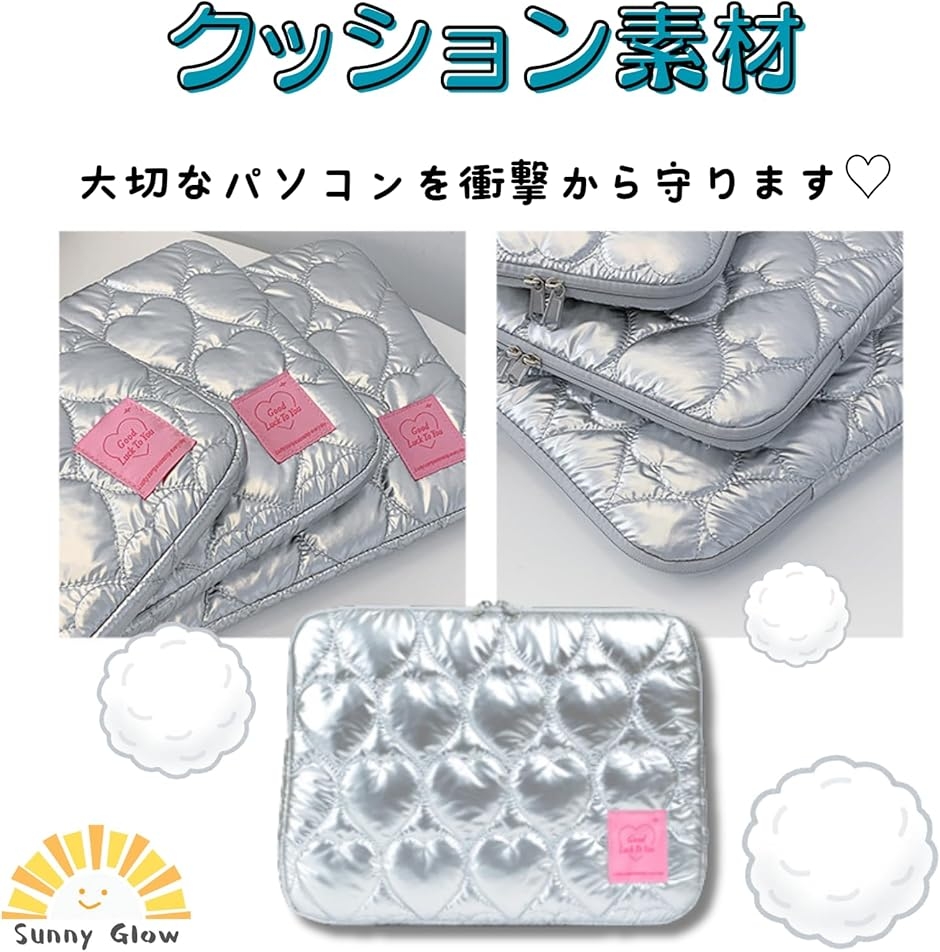 パソコンケース ハート柄 韓国風デザイン タブレット ノートPC iPad 収納対応 レディース おしゃれ 13インチ (シルバー)