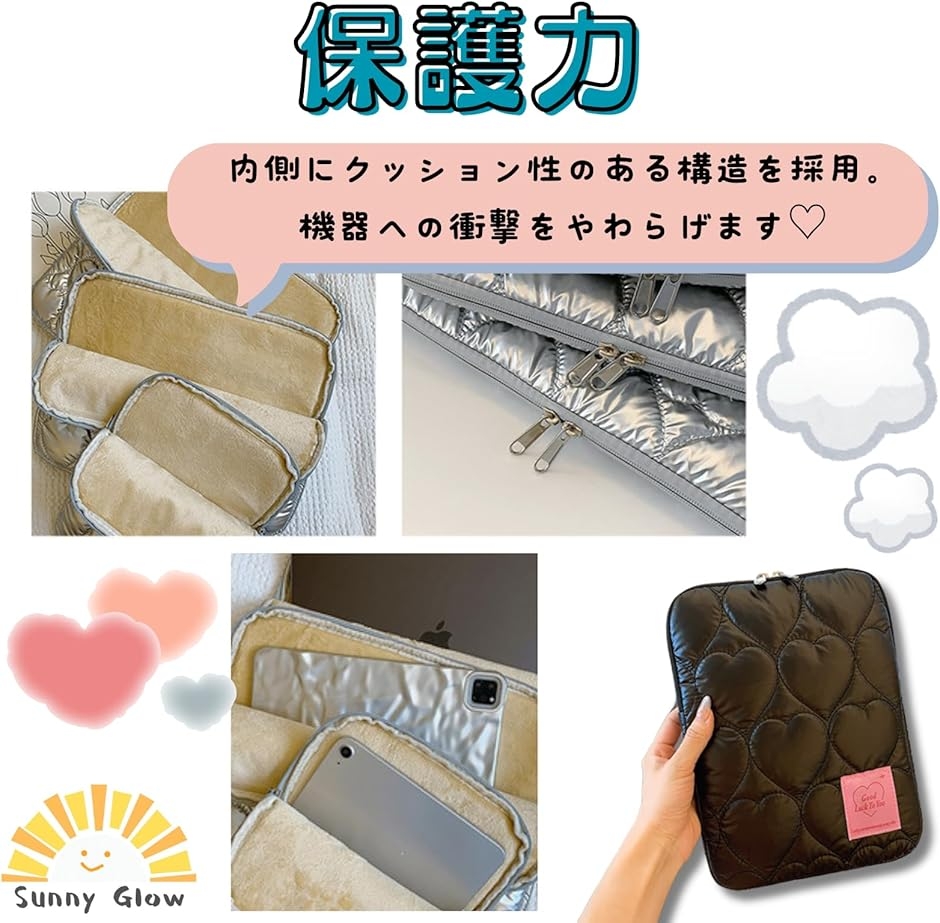 - Sunny Glow パソコンケース ハート柄 韓国風デザイン タブレット ノートPC iPad 収納対応 レディース おしゃれ (11インチ、グリーン) 【韓国風デザイン】トレンド感のある韓国スタイルを取り入れたハート柄デザインで、女性らしい印象を演出します。日常使いやプレゼントにも最適です。 【11インチ対応】11インチサイズのノートPCやタブレットにフィットし、外出時や移動時の持ち運びにも便利です。通勤・通学にも活躍します。 【クッション素材】クッション素材を使用しているため、大切なパソコンを衝撃から守ります。 【保護力】内側にクッション性のある構造を採用し、機器への衝撃をやわらげます。移動中の安心感を高めます。 【機能性とデザイン性】軽量&スリムなデザインなので、自分用にはもちろん、プレゼントにもぴったりなアイテムです。 商品コード65080228485商品名Sunny Glow パソコンケース ハート柄 韓国風デザイン タブレット ノートPC iPad 収納対応 レディース おしゃれ (11インチ、グリーン)型番SG-122カラーグリーン※他モールでも併売しているため、タイミングによって在庫切れの可能性がございます。その際は、別途ご連絡させていただきます。※他モールでも併売しているため、タイミングによって在庫切れの可能性がございます。その際は、別途ご連絡させていただきます。