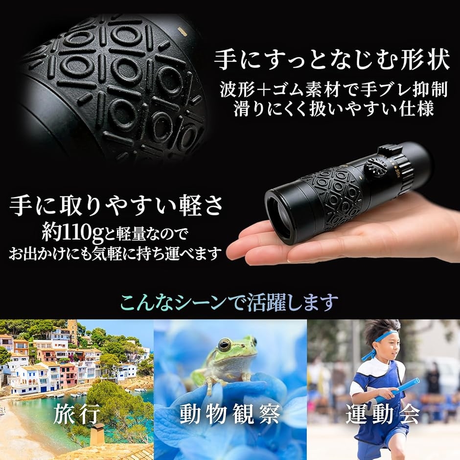 「多用途に活躍する単眼鏡」ライブ観賞、登山、野鳥観察、スポーツ観戦、旅行、フィギュアスケート、飛行機観察など幅広く使用可能。