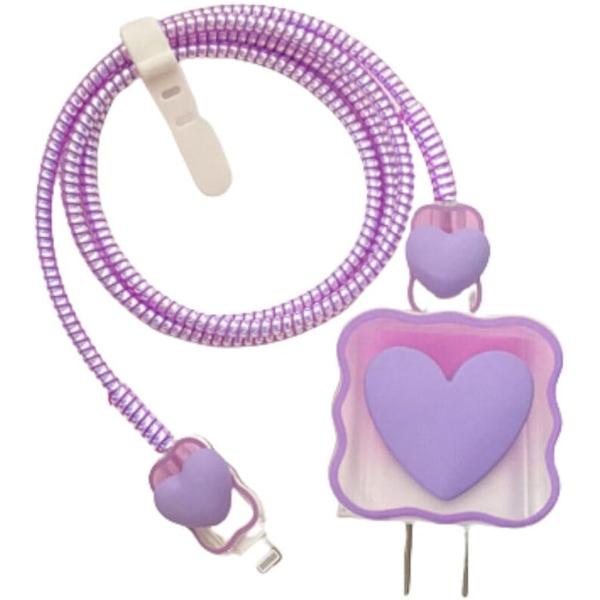 USB-C充電器カバー アップル用 18W/20W クリアソフト 3Dラブハートデザイン アイホン 11-14(パープル5点セット)