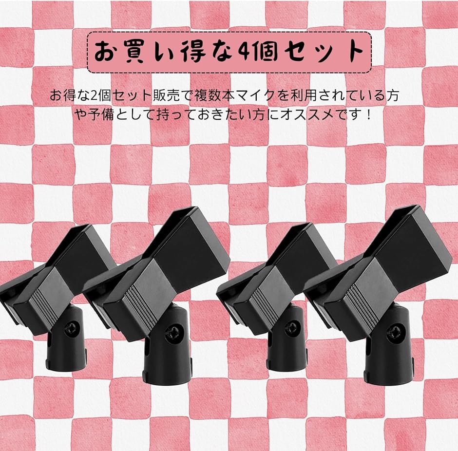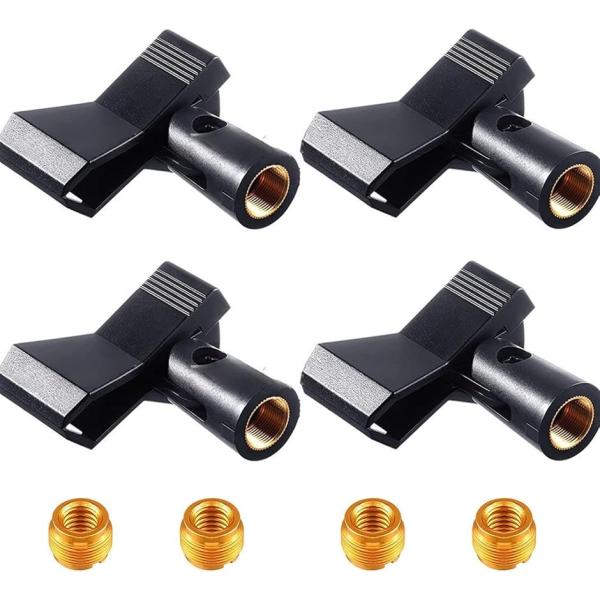 マイクホルダー クリップ 5/8ネジ 4個セット (ブラック)