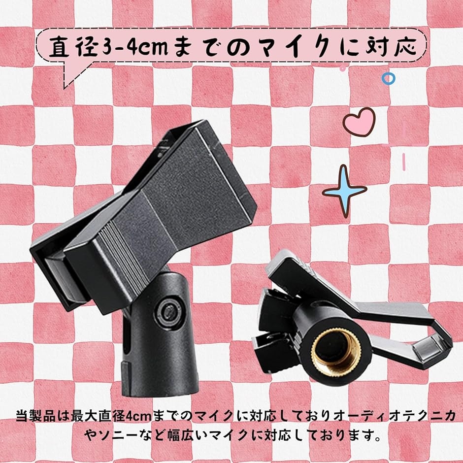 「直径3-4cmまでのマイクに対応」当製品は最大直径4cm(約40mm)のマイクに対応。