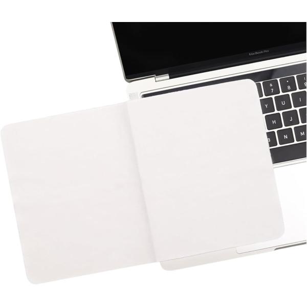 クリーニングクロスは超極細繊維(マイクロファイバー)で作られており、静電気抑制で、指紋や皮脂などを軽く拭き取れ、汚れを強力除去。抜群で柔らかい生地で液晶画面にキズを付けられないし、クロスを挟んたままで、フタを浮く感がありません。