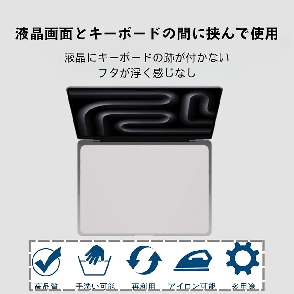 液晶画面の指紋汚れをキレイに拭き取れ、キーボートに被せてホコリを防止でき、液晶画面とキーボードの間に挟んで使用し、液晶画面を優しく守れます。
