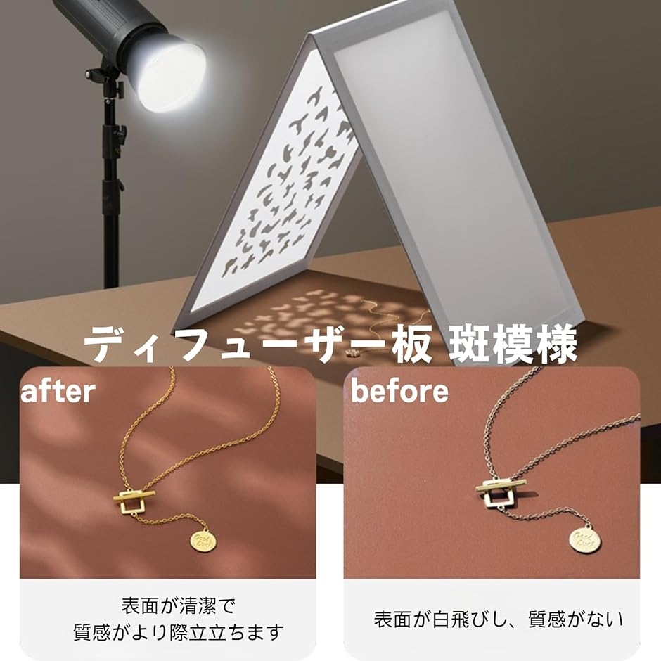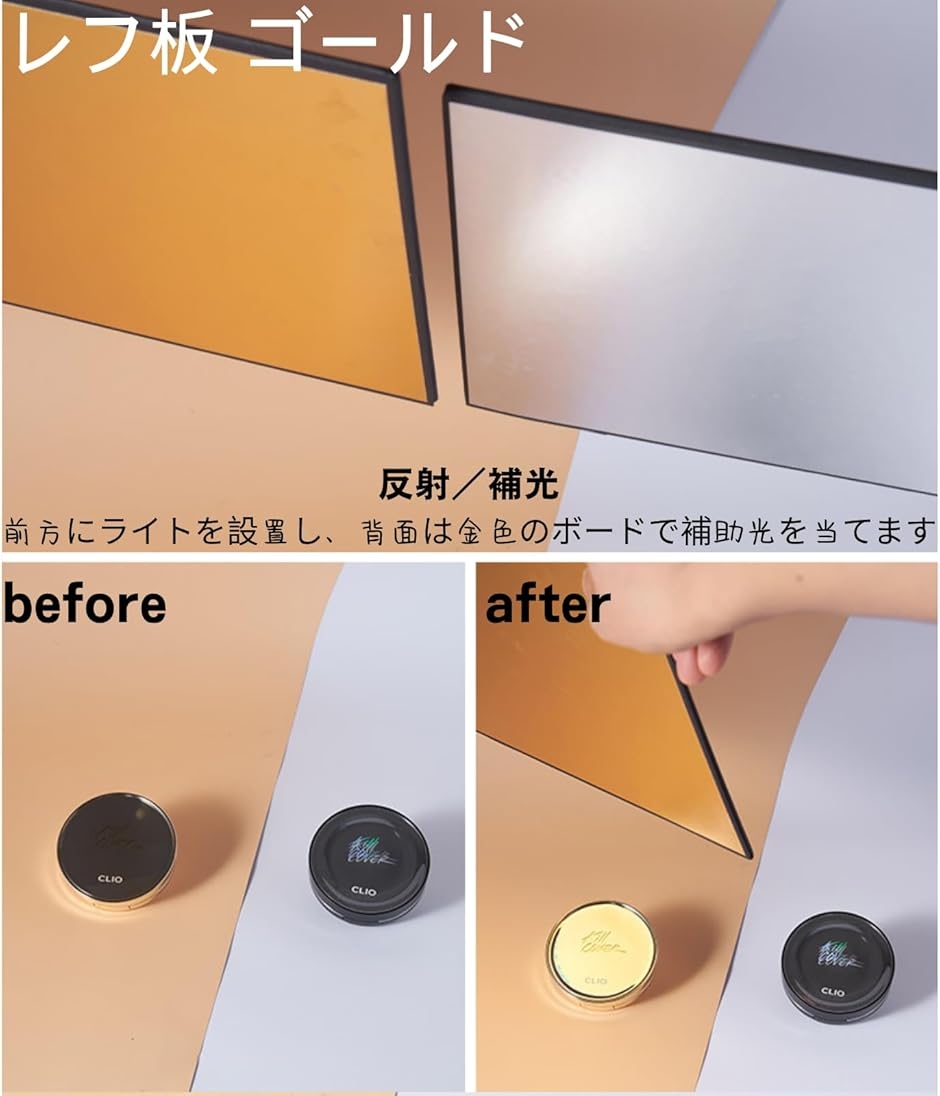 - バリエーションコード : 2bupg0k3pw商品コード2bupgvswyd商品名レフ板 ディフューザー板 ゴールド シルバー 照明道具 自立 A3サイズ 補光/吸光/輪郭強調 折り畳み可ブランドlulubelleカラーディフューザー板 標準サイズ等A3「1枚で光をコントロール」反射ボードは光を“足す”、柔光ボードは光を“柔らげる”。用途に応じて選べる4タイプ。「ゴールド/シルバー」ゴールドは暖かいトーンで肌や金製品のツヤ感UP。シルバーは高反射でシャープなハイライト・補助光に最適。「A3相当サイズ」約30x42cmの扱いやすい大きさ。卓上撮影やジュエリー・コスメ・ガラス製品などの物撮り、スマホ撮影にも「お手入れ簡単(柔光ボード)」柔光ボードはPVC素材。水に濡れても傷みにくく、汚れはサッと水拭きOK、繰り返し使えて経済的。*注意ください* ・写真の写り方により、実際の商品と異なって見える場合がございます。・サイズにつきましては若干の誤差が生じる場合がございます。・生産時期により、商品のデザインが若干異なる場合がございます。上記予めご了承の上お買い求めくださいませ。※ 他ネットショップでも併売しているため、ご注文後に在庫切れとなる場合があります。予めご了承ください。※ 品薄または希少等の理由により、参考価格よりも高い価格で販売されている場合があります。ご注文の際には必ず販売価格をご確認ください。※ 沖縄県、離島または一部地域の場合、別途送料の負担をお願いする場合があります。予めご了承ください。※ お使いのモニタにより写真の色が実際の商品の色と異なる場合や、イメージに差異が生じることがあります。予めご了承ください。※ 商品の詳細(カラー・数量・サイズ 等)については、ページ内の商品説明をご確認のうえ、ご注文ください。※ モバイル版・スマホ版ページでは、お使いの端末によっては一部の情報が表示されないことがあります。すべての記載情報をご確認するには、PC版ページをご覧ください。