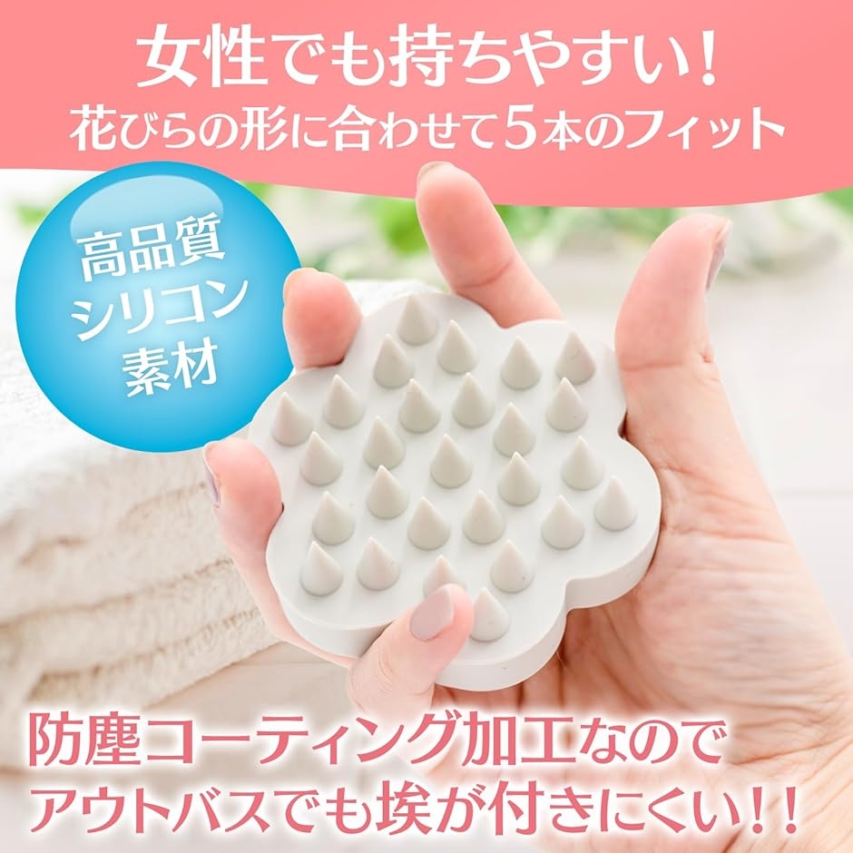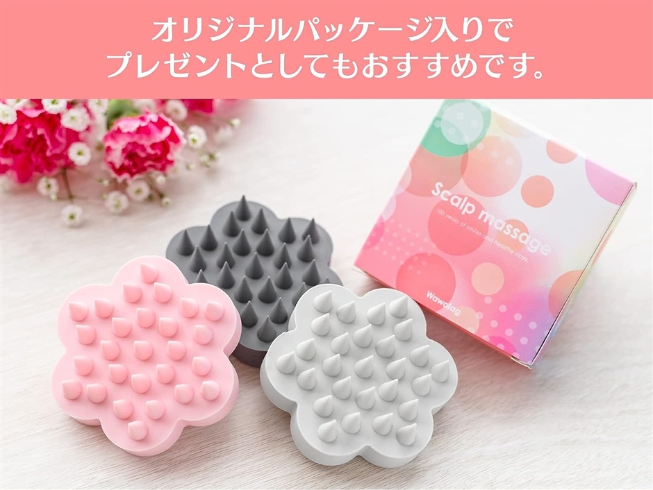 - バリエーションコード : 2b2gprl30t商品コード2b2gpuvvln商品名フラワー 頭皮マッサージ シャンプーブラシ スカルプブラシ ヘッドマッサージ 頭皮ブラシ 頭皮ケア 誕生日プレゼント ホワイトブランドWawalagカラーホワイト「お家でヘッドスパ」おしゃれでかわいいお花のデザインのスカルプブラシ FLOWER ( フラワー )。硬すぎず柔らかすぎない硬さに調整しているので、肌当たりの良さが絶妙です。インバス・アウトバスのどちらでも使用可能で、お風呂での使用にも最適です。シャンプー時に使用することで、頭皮ブラシとしても活躍し頭皮ケアを行うことができます。頭皮マッサージやヘッドマッサージをお家で手軽にお楽しみください。「毛髪診断士が推薦」毛髪診断士の小向真佐子さんが推薦「肌当たりがとにかくやさしく、絶妙な硬さと使い心地。毛穴には効果的にアプローチできるように設計されています。痛みを感じてスカルプブラシを諦めていた方にもオススメします。「持ちやすいデザイン」おしゃれでかわいいお花のデザインが特徴。花びらの形に合わせて5本がフィットする持ちやすいデザインになっています。素材は高品質のシリコン。かわいいパッケージで 誕生日 や 記念日 はもちろん、敬老の日 に おじいちゃん おばあちゃん へ、 父の日 に 父親 へ 、 母の日 に 母親 へ 健康グッズ の プレゼント ギフト としてもおすすめです。「こんな方にオススメ。」(1)痛くないスカルプブラシをお探しの方(2)アウトバスでも使える、置いてもかわいいスカルプブラシをお探しの方(3)毎日のシャンプーで毛穴の詰まりをクリーンにしたい方(4)スマホやPCで頭のコリを感じてる方(5)手軽のマッサージしたい方※ 他ネットショップでも併売しているため、ご注文後に在庫切れとなる場合があります。予めご了承ください。※ 品薄または希少等の理由により、参考価格よりも高い価格で販売されている場合があります。ご注文の際には必ず販売価格をご確認ください。※ 沖縄県、離島または一部地域の場合、別途送料の負担をお願いする場合があります。予めご了承ください。※ お使いのモニタにより写真の色が実際の商品の色と異なる場合や、イメージに差異が生じることがあります。予めご了承ください。※ 商品の詳細(カラー・数量・サイズ 等)については、ページ内の商品説明をご確認のうえ、ご注文ください。※ モバイル版・スマホ版ページでは、お使いの端末によっては一部の情報が表示されないことがあります。すべての記載情報をご確認するには、PC版ページをご覧ください。「サイズ」縦7.5cmx横7.5cmx高さ2.8cm、突起は9mm「カラー」グレー、ホワイト、ピンク、ブラック「材質」シリコン「重量」70g「商標登録」6531475