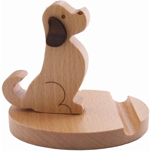 スマホ スタンド ホルダー かわいい 犬 木製 携帯 電話 卓上 インテリア 充電 タブレット アイフォン アンドロイド 便利(A)