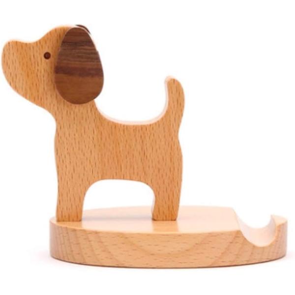 スマホ スタンド ホルダー かわいい 犬 木製 携帯 電話 卓上 インテリア 充電 タブレット アイフォン アンドロイド 便利(B)