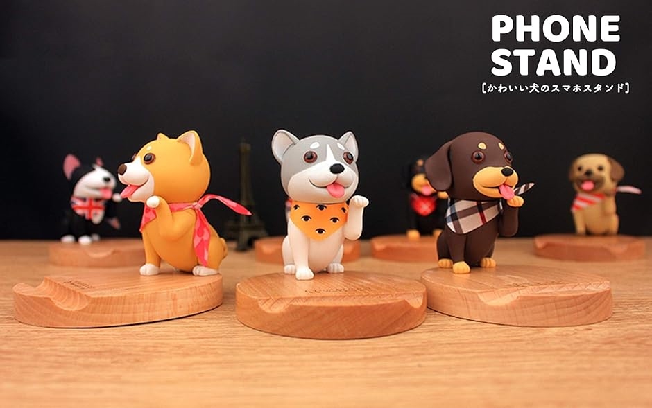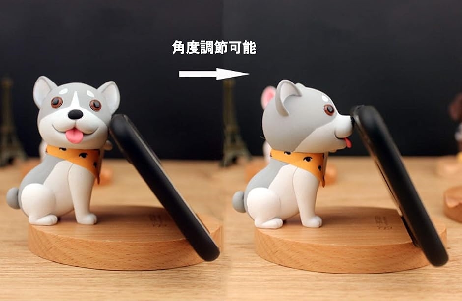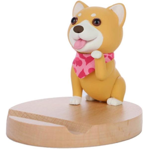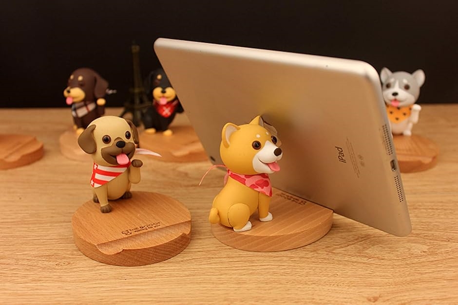 スマホ スタンド ホルダー かわいい 犬 木製 携帯 電話 卓上 インテリア 充電 タブレット アイフォン アンドロイド 便利(柴犬)