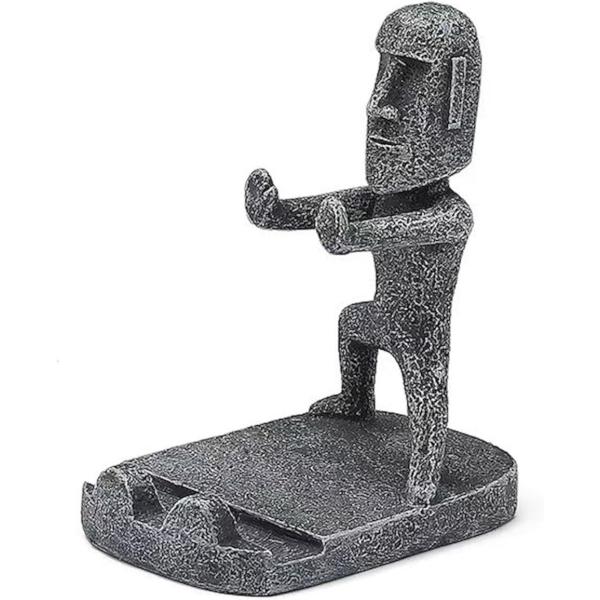 スマホスタンド モアイ おもしろ ユニーク 卓上 グッズ イースター 島 可愛い おしゃれ 携帯 タブレット ホルダー 面白い (グレー)