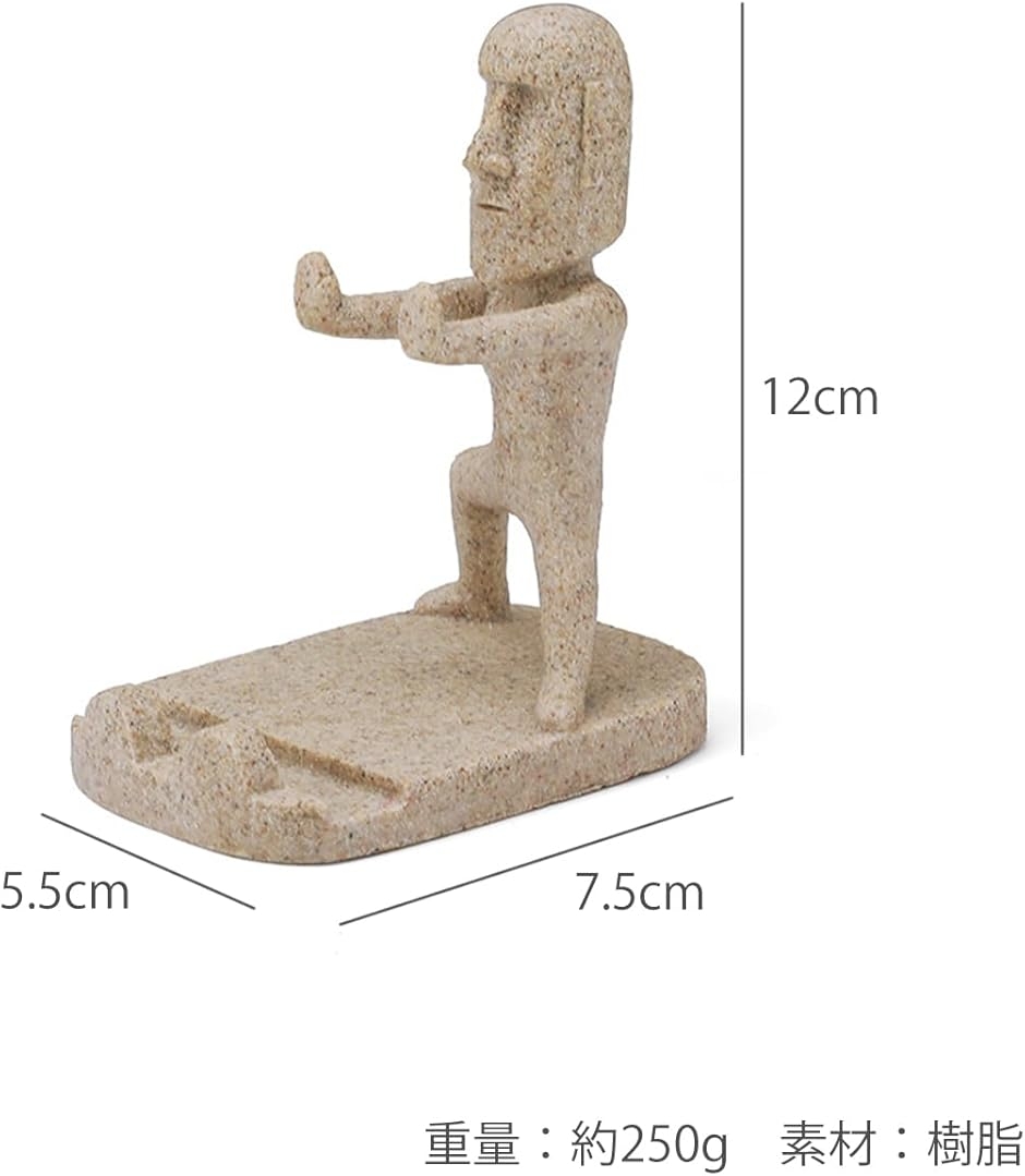 このモアイ像のスマートフォンスタンドは、独特でユニークなデザインが特徴的です。