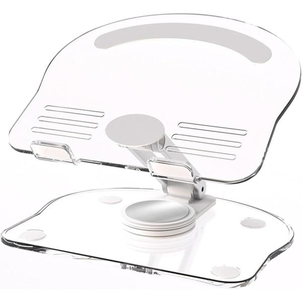 タブレット スタンド 360°回転 高さ調整 角度調整 卓上 透明 クリア ホルダー 持ち運び 折りたたみ 軽量 滑り止め(グレー)