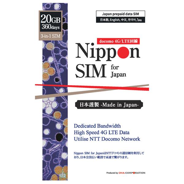 DHA Corporation DHA-SIM-139 Nippon SIM for Japan 標準版 365日 20GB 日本国内用プリペイドデータSIMカード