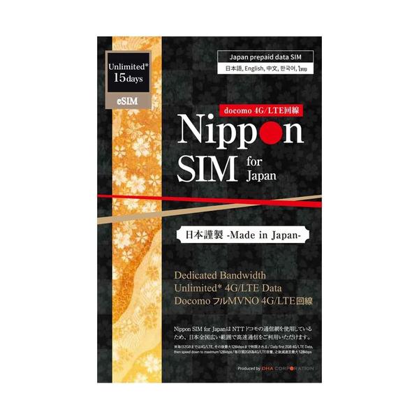 Nippon SIM for Japan 無制限版 15日 日本国内用 ドコモ回線 プリペイドデータSIMカード