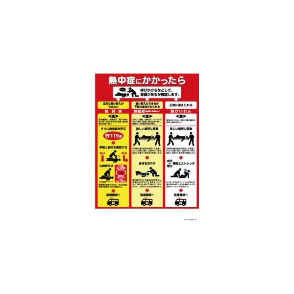 - 【取寄品 出荷:約2−6日 土日祝除く】●熱中症の症状と救急措置を明記した汎用ポスターです。