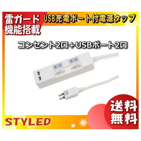★STYLED STP2UA2W-2 USB充電ポート付電源タップ ホワイト STP2UA2W2 「送料無料」