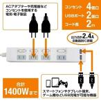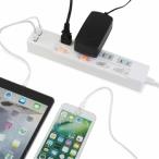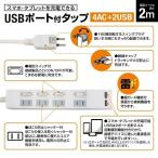 延長コード 2m 電源タップ usb付き 雷ガード USB 充電ポート付 電源タップ 2ポート合計2.4A出力・コンセント4口・2m USB 延長コード ホワイト