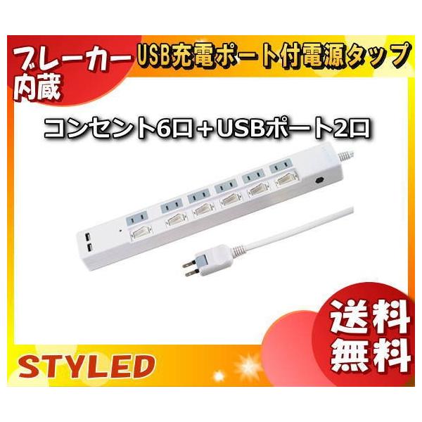 ★STYLED STP6UA2W-2 USB充電ポート付電源タップ ホワイト STP6UA2W2 「送料無料」