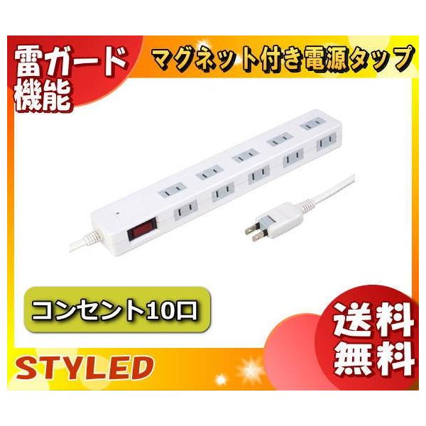 ★STYLED STP10W-2 マグネット付き電源タップ ホワイト STP10W2 「送料無料」