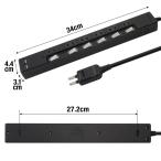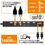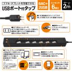 ブラック 延長コード 2m 電源タップ usb付き 雷ガード USB充電ポート付電源タップ 2ポート合計3.4A出力・コンセント6口 2m USB 電源タップ