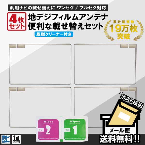 フィルムアンテナ 4枚 セット 地デジ クリーナー付 カロッツェリア イクリプス クラリオン 他 ナビ スクエア型