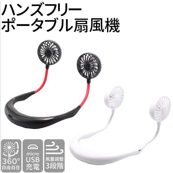 ハンズフリー ポータブル扇風機 風量3段階調節 充電式 首かけ 首掛け ミニ 卓上 静音 小型 USB デスク アウトドア スポーツ観戦 サーキュレーター