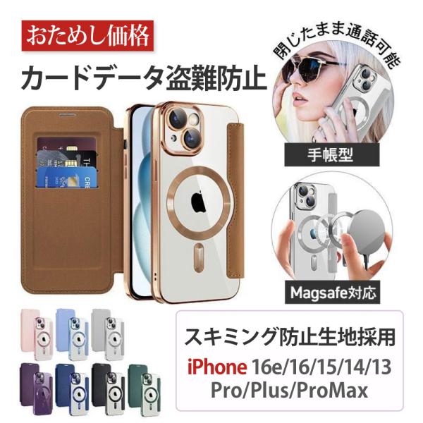 iphoneケース スマホ magsafe 16e 16 15 14 13 カバー おしゃれ 手帳型 マグネット pro max plus カメラ クリア 耐衝撃 ピンク ブラック レザー 透明 収納 爆買