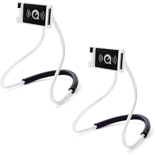 【互換品】 首掛け式 スマホホルダー 2個セット スマホ首掛け 携帯 スタンド ハンズフリー 寝ながら 自撮り 配信(ホワイト2個セット)