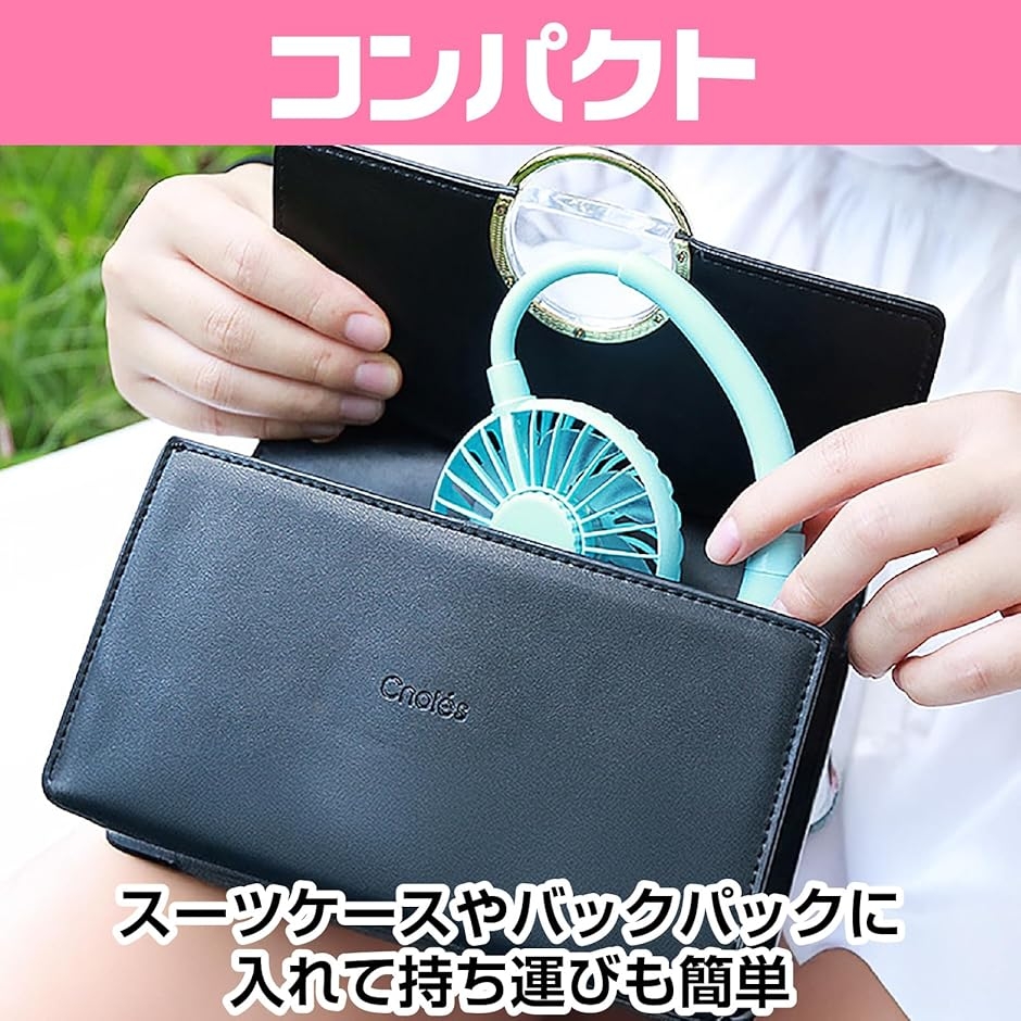 「ハンズフリーで快適・首掛け扇風機」 両手を自由に使えるハンズフリー設計で、通勤・通学・アウトドア・スポーツ観戦など、さまざまなシーンで活躍します。