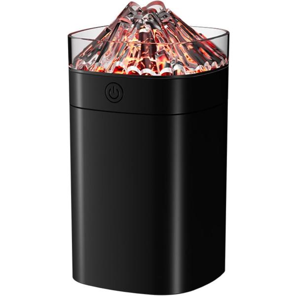 加湿器 火山亀裂型 超音波 ポータブル 400ml USB給電式 LEDライト 乾燥 ドライ 静音 寝室 リビング (ブラック Aタイプ)