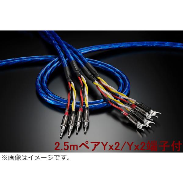 - ■バイワイヤリング接続に対応した4芯構造。高域側、低域側で芯線を分けることで高域の伸びやかさ、優れたS/N感、解像度感を得ることが可能。■バイワイヤリング仕様の場合、1芯あたり低域側は3.5スケア、高域側は2.0スケア。シングル仕様であれば、5.5スケアの特太サイズでの接続が可能です。■迫力のあるエネルギー感、中低域の力感とともに、空間的な音楽の演奏を描出する端麗な音場感。スケールの大きい抜群のパフォーマンスを発揮。●導体構成 超高純度6NCu、高純度無酸素銅線PCUHD、高純度無酸素銅C1011、高純度無酸素銅OFC●構造 高純度4素材によるハイブリッド多芯集合構造(赤、黒、白、黄の4芯構造)。推奨される接続方法として、シングル接続時は(+側):赤+黒/(−側):白+黄(スターカッド接続)。バイワイヤリング接続時は高域側(+側):黒/(−側):黄、低域側(+側):赤/(−側):白●導体サイズ (低域用)3.5スケア×2、(高域用)2.0スケア×2●シース 透明で鮮やかなブルーのPVC(EU-RoHS対応)●絶縁体 高純度ポリエチレン●シールド 厚手アルミラップシールド●介在 天然綿糸●外径 14mmφ●端子 厚手のロジウムメッキによるオリジナルY・B端子付、精密で高品位なネジ止め設計。装着端子:(シングル使用時)Yラグ端子「LUGY-8.5」相当端子/バナナプラグ「LUGB-8.5ST」相当端子、(バイワイヤリング使用時)「LUGB-5.5Rhシリーズ」相当端子GSP88002.5ペアY2