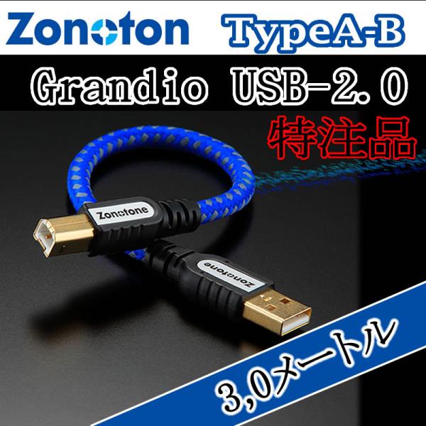 ゾノトーン Grandio USB-2.0ケーブル タイプA-タイプB 3.0メートル 特注品 超高純度6N(99.9999%),純銀コートOFC,高純度無酸素銅線PCUHDを採用