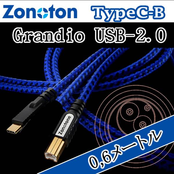 ゾノトーン Grandio USB-2.0ケーブル タイプC-タイプB 0.6メートル 超高純度6N(99.9999%),純銀コートOFC,高純度無酸素銅線PCUHDを採用
