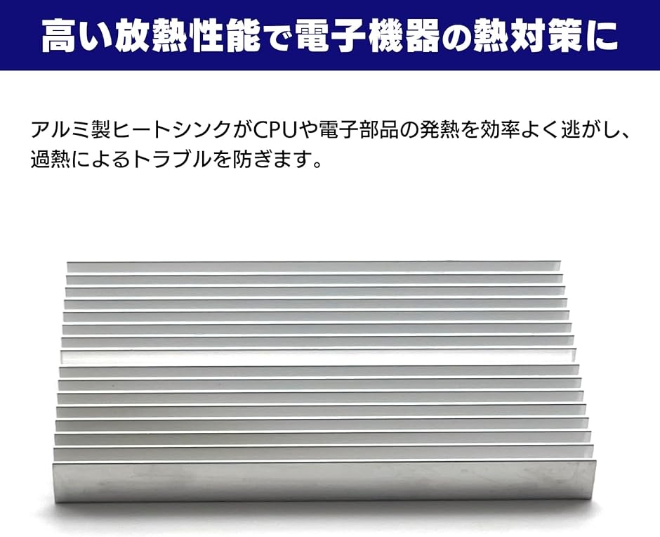 電子機器やパソコンの冷却に使えるアルミ製放熱ヒートシンクです。