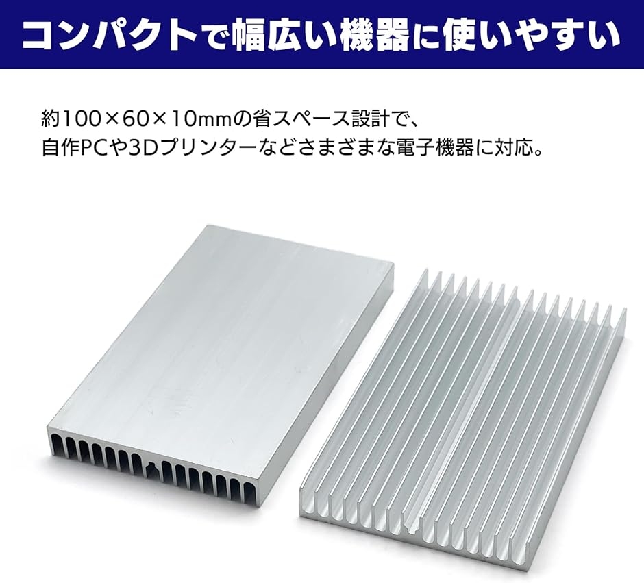 自作PCや3Dプリンター、各種モーターなど幅広い電子部品に対応し、省スペースでも使いやすい放熱パーツです。 - 楽天での商品説明(ホリック)