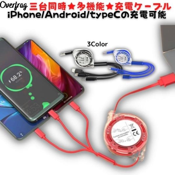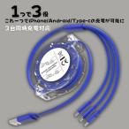 3台同時充電可 3in1 Micro usb type c 充電ケーブル コードリール式 急速充電 対応 旅行 便利グッズ ライトニング バッテリー用